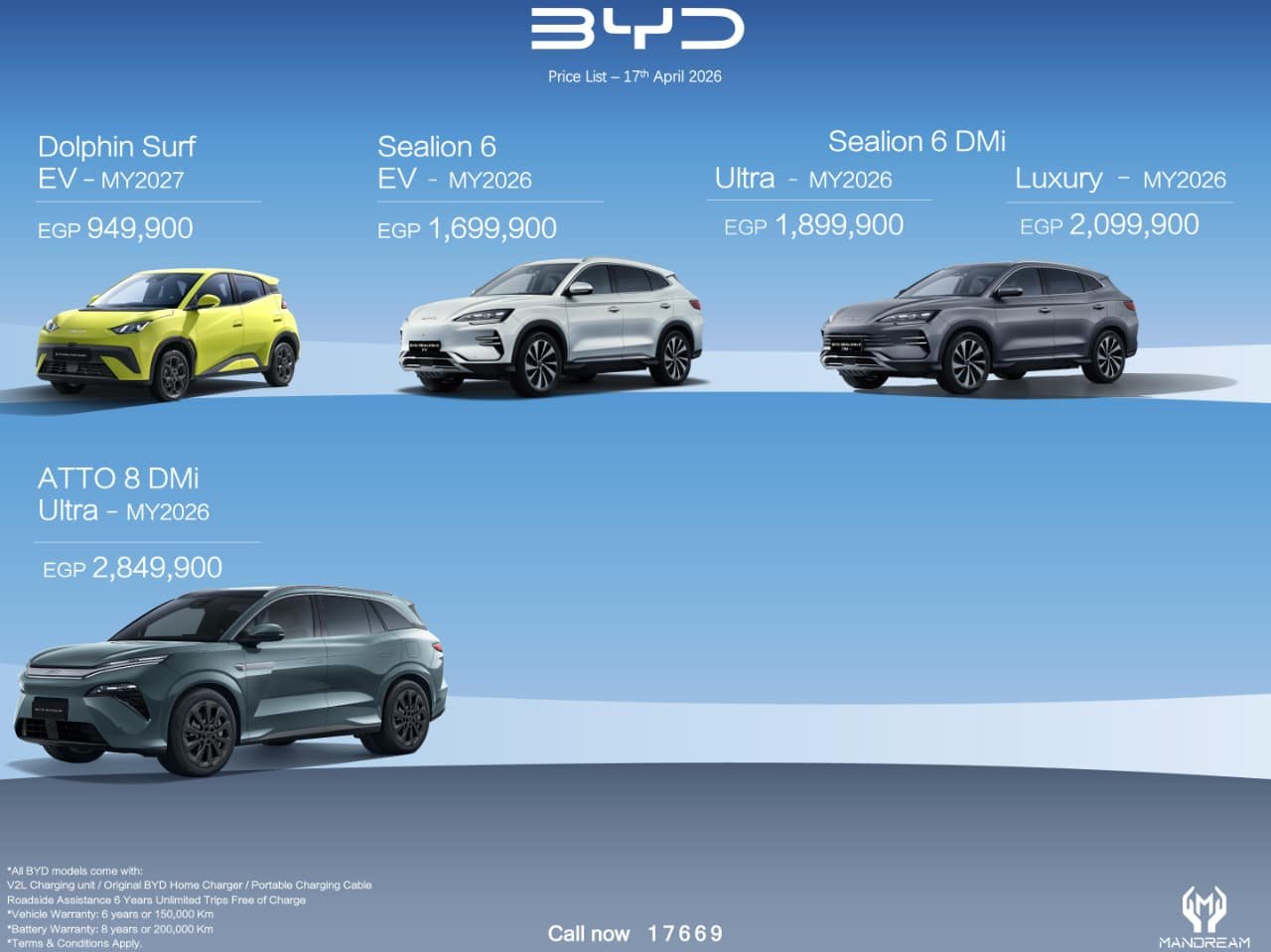 تعكس القائمة الجديدة استراتيجية BYD للتوسع في تقديم خيارات متنوعة للمستهلك المصري، من السيارات الكهربائية بالكامل مثل Dolphin Surf وSealion 6 EV، إلى السيارات الهجينة القابلة للشحن مثل Sealion 6 DM-i وATTO 8.