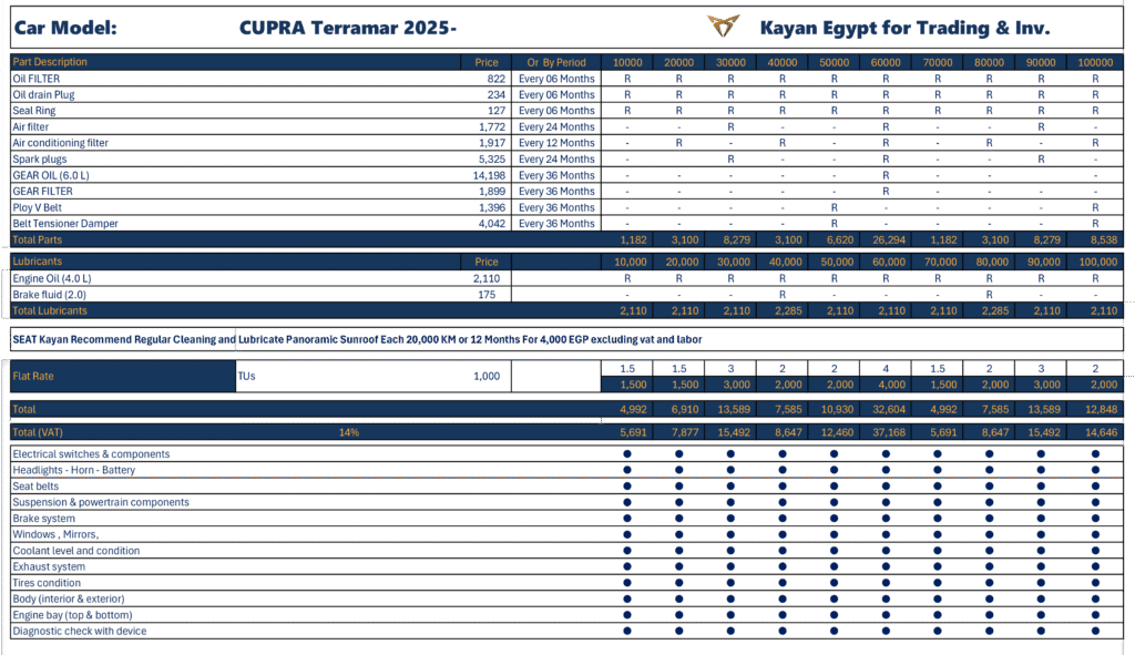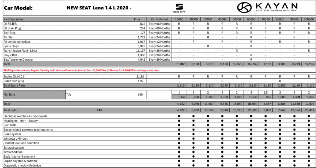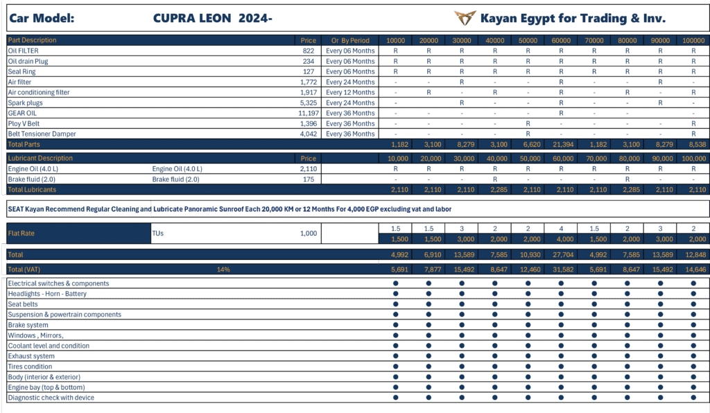 أعلنت شركة كيان إيجيبت عن أحدث التعديلات على أسعار الصيانة الدورية لعلامتي سيات وكوبرا ، والتي شملت تخفيضات متفاوتة على عدد من الطرازات، في خطوة تهدف إلى تعزيز رضا العملاء وتقليل تكاليف التشغيل.