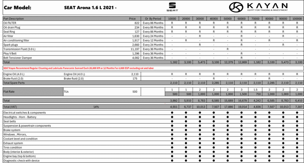 وأكدت الشركة أن هذه التعديلات تأتي ضمن خطتها المستمرة لتقديم خدمات ما بعد البيع بأسعار تنافسية، مع الحفاظ على أعلى معايير الجودة المعتمدة من المصنع، بما يضمن تجربة ملكية أكثر سهولة وثقة لعملاء سيات وكوبرا في مصر.