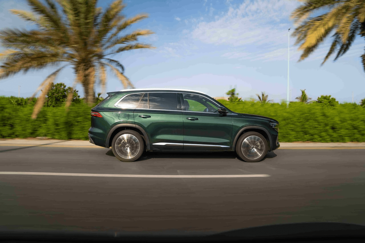 وتأتي السيارة بمصابيح LED أمامية وخلفية متكاملة تمنحها حضورًا مميزًا على الطريق، بالإضافة إلى عجلات رياضية قياس 20 بوصة، وقضبان سقف، وباب خلفي كهربائي مزود بمستشعر حركة القدم لسهولة التحميل.