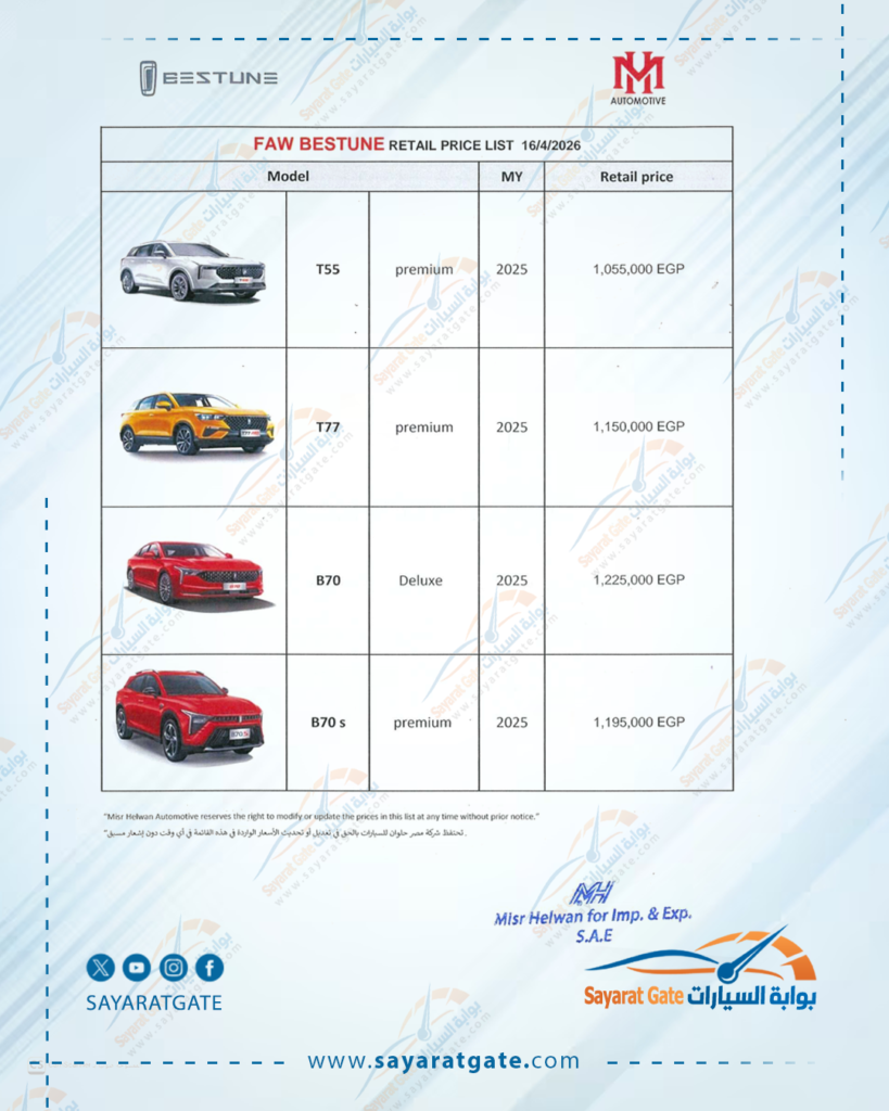 مصر حلوان تعلن أسعار «بستيون» الجديدة في مصر