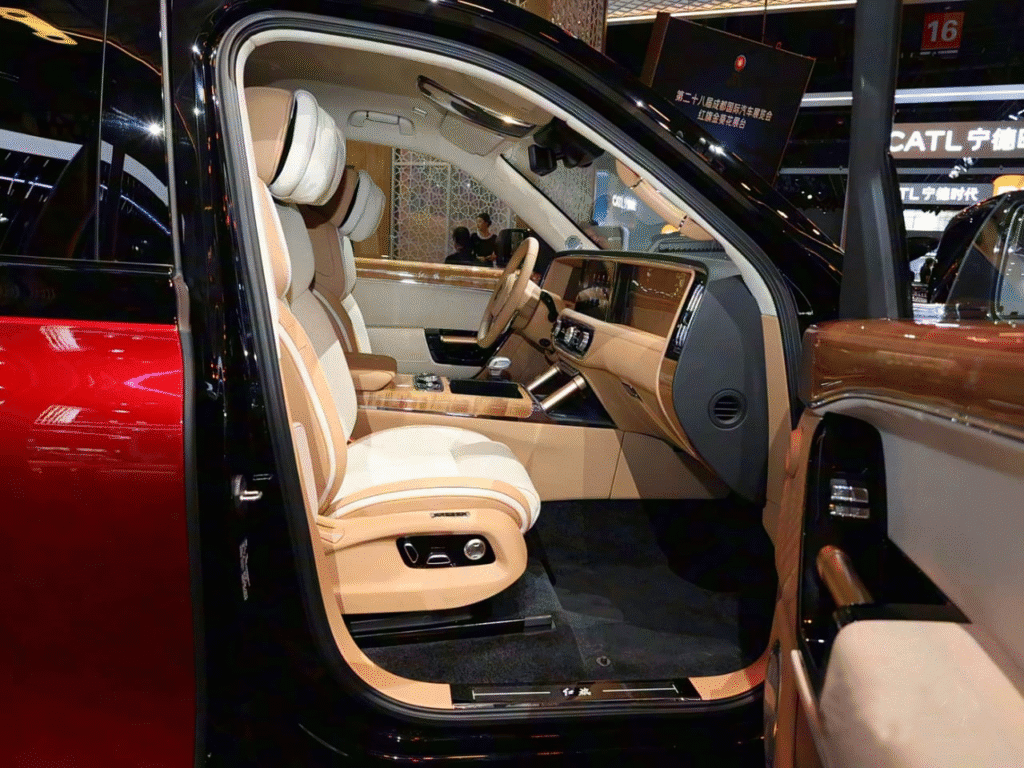 الخطوط الجانبية تمتاز بالانسيابية والتوازن بين القوة والأناقة، مع أقواس عجلات بارزة وجنوط ضخمة قياس 22 بوصة تعزز من فخامتها. أما التصميم الخلفي، فيتميز بشريط إضاءة مستعرض يحمل شعار Hongqi الكلاسيكي، في مزيج يجمع الأصالة والحداثة في آن واحد.