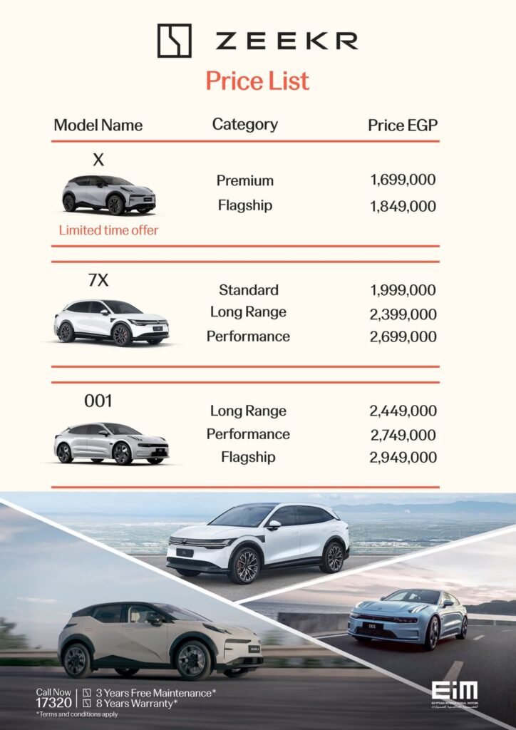 في خطوة جديدة لتعزيز انتشار السيارات الكهربائية في السوق المصري، أعلنت شركة EIM الوكيل الرسمي لعلامة زيكر عن طرح الطراز الكهربائي الجديد كليًا زيكر 7X بسعر يبدأ من 1,999,000 جنيه، مع إعادة تسعير باقي طرازات زيكر المتوفرة محليًا بخصومات تصل إلى 400 ألف جنيه، في خطوة تهدف إلى زيادة التنافسية وجذب شريحة أوسع من العملاء المهتمين بالتقنيات النظيفة والسيارات الذكية.