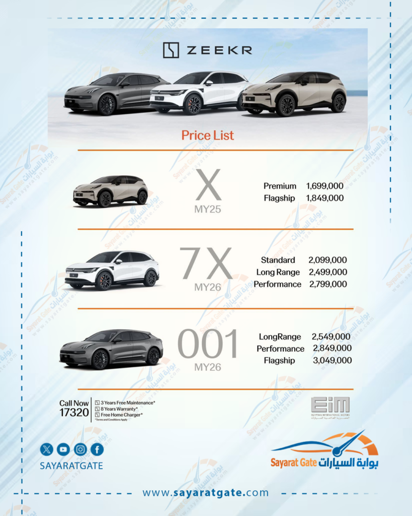 أعلنت الشركة المصرية العالمية للسيارات (EIM)، الوكيل الحصري لعلامة Zeekr، عن أحدث قائمة أسعار لطرازاتها المتنوعة داخل مصر،.